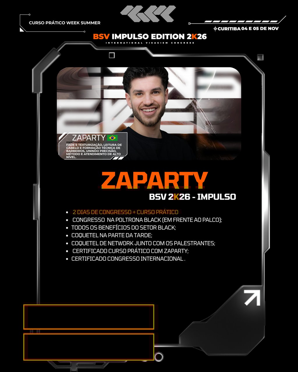 O BSV IMPULSO 2K26 é mais do que um evento, é uma experiência transformadora que une inovação, arte e excelência no universo do visagismo e barbearia classica. Sob a liderança visionária de Rafael Barone e sua esposa, Rosemary Barone, o Grupo Barone tem se consolidado como referência no setor, promovendo inovação, capacitação e conexões estratégicas entre os maiores profissionais da beleza e estética.
